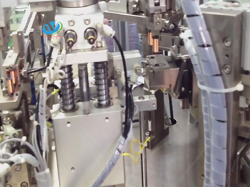 4、Fully automatic feeding and assembling. Automatic riveting, AB foot assembling, reed loading, electrical inspection, dust removal shell, laser marking, and collect plates. Auto-start / stop when there is material (or no material) detected. Detect parts presence, the good products and NG products will be unloaded separately.